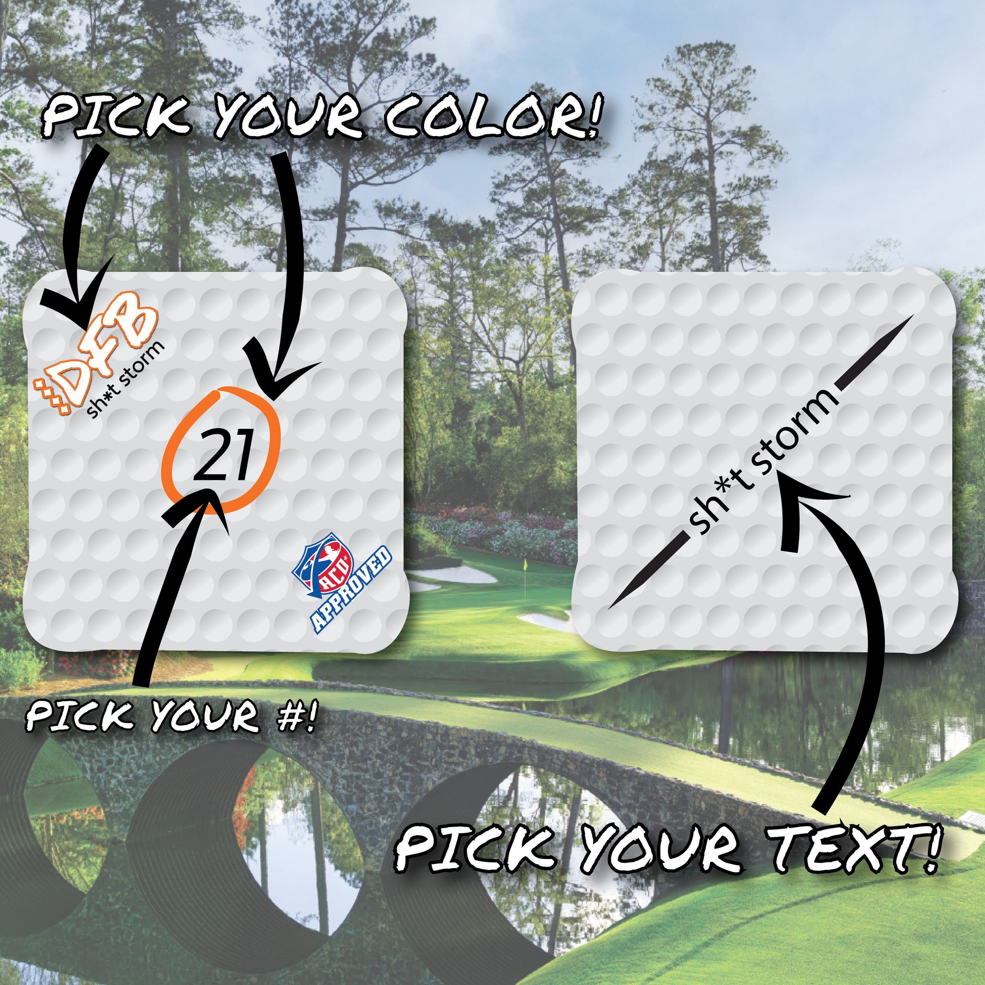 Like golf? Want your bag to look like a golf ball? Pick you marking color, ball number, and alignment text! Available for a limited time in our sh*t storm series! See bag chart for speeds!